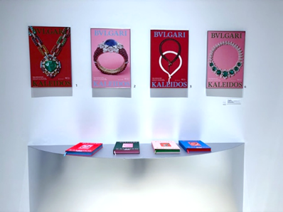 ブルガリの色使いは、色彩調和の研究で有名な、ゲーテやシュブルールの理論に基づいており、 補色や、白や黒によるセパレーションの効果が取り入れられている作品がたくさん展示されています。